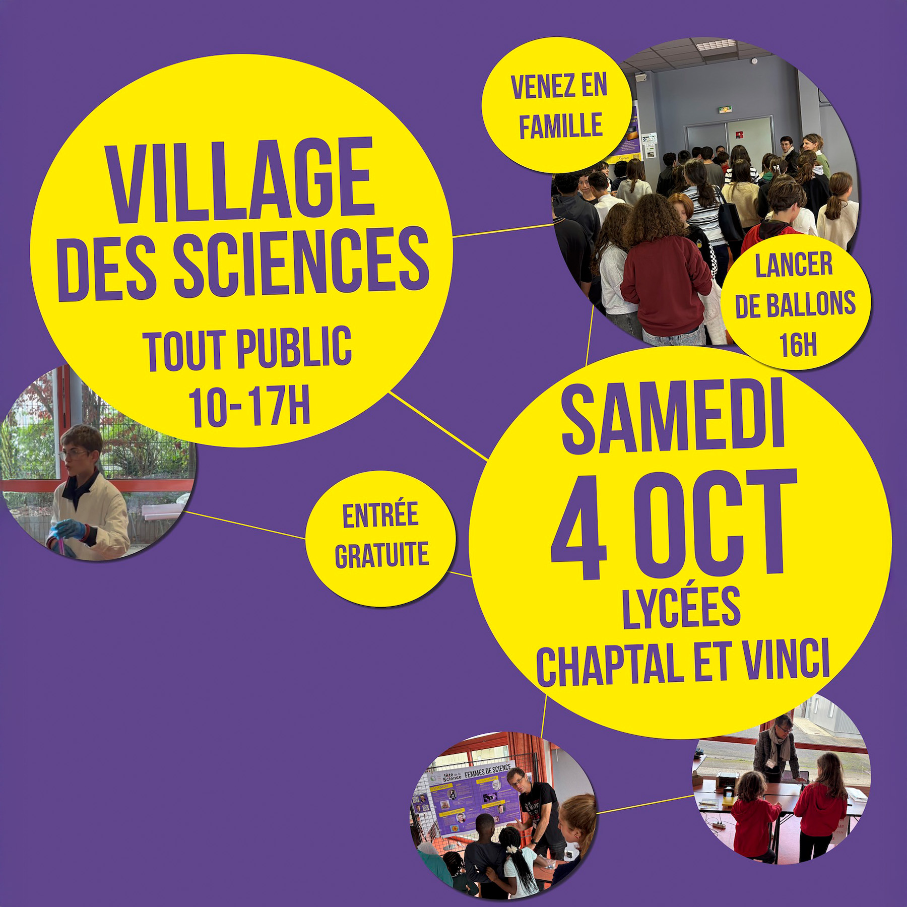 Les lycées Chaptal et Vinci présentent le Village des Sciences 2025. Une vingtaine d'ateliers ludiques et pédagogiques en font un vrai Palais de la Découverte !